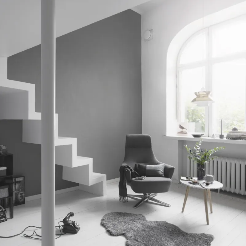Delikatny i bezpieczny ciemnoszary z nutą niebieskiego. Ten spokojny kolor sprawdzi się jako tło dla różnych stylów wnętrzarskich.