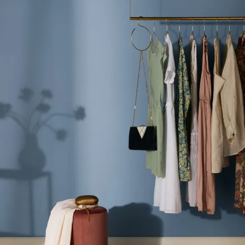 Błękit V431 Sandmanbędzie pięknie prezentował się także w sypialni i garderobie. Ten błękit ma moc, a jednocześnie działa kojąco i uspokajająco. Wybierając odcień farby na ścianę warto pamiętać o tym, że im większa jest pomalowana powierzchnia, tym kolor wydaje się intensywniejszy i bardziej wyrazisty. Aby uniknąć niepożądanych efektów, przetestuj kolor na powierzchni, którą zamierzasz pomalować.