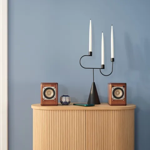 W tej aranżacji prym wiodą starannie dobrane meble i elementy wystroju w stylu retro. Wypróbuj emalię do drewna Tikkurila Everal Aqua w kolorzeH353 Forget me not i postaw kropkę nad 'i' burgundowym akcentem M339 Tango. Ściana w tle została pomalowana w tym samym odcieniu H353 Forget me not.